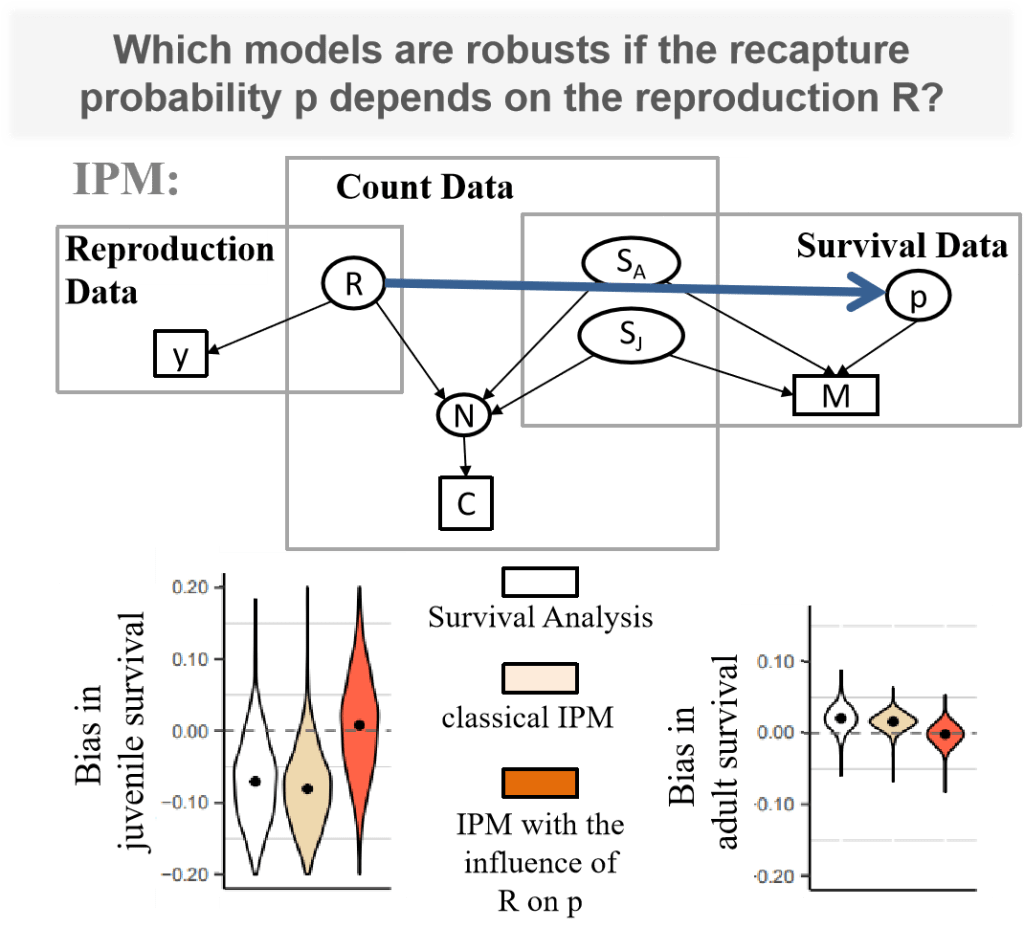 The difficulties in studying management and conservation issues lie in the typical short duration of field studies, the often too small population size already reached by a declining population and our limited knowledge of wild populations. Sometimes we need to make the most of opportunistic data, which are the only data available. Conversely, models of population dynamics have been developed using data collected rigorously, on a sufficient number of individuals over several decades. I therefore study the robustness of population dynamic models to understand what their limits are, in which contexts, under which assumptions and with how much data we can use them. I assess how complex a model should be to give robust results. I also combine different types of data to get robust and useful results depending on the question.